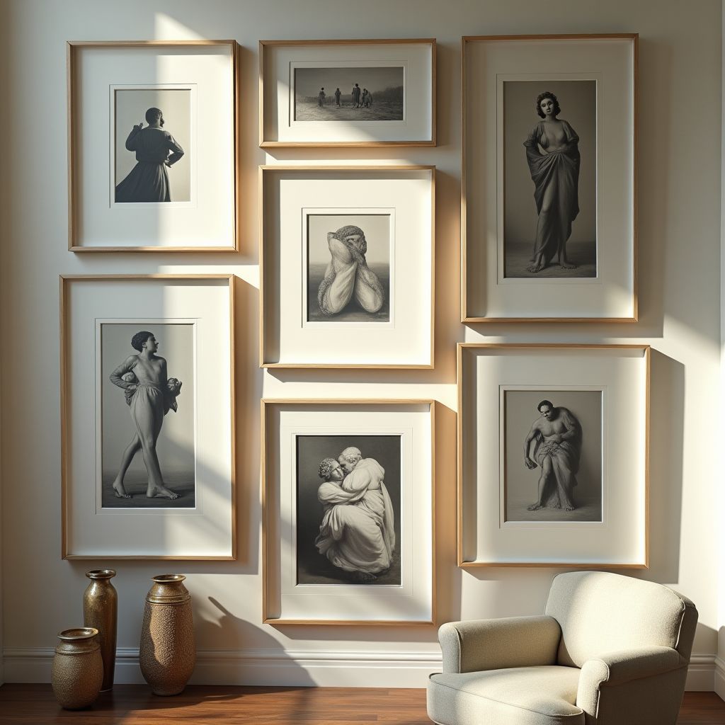 Gallery wall design services creatively arrange multiple framed pieces into cohesive and visually appealing layouts, enhancing any space.
